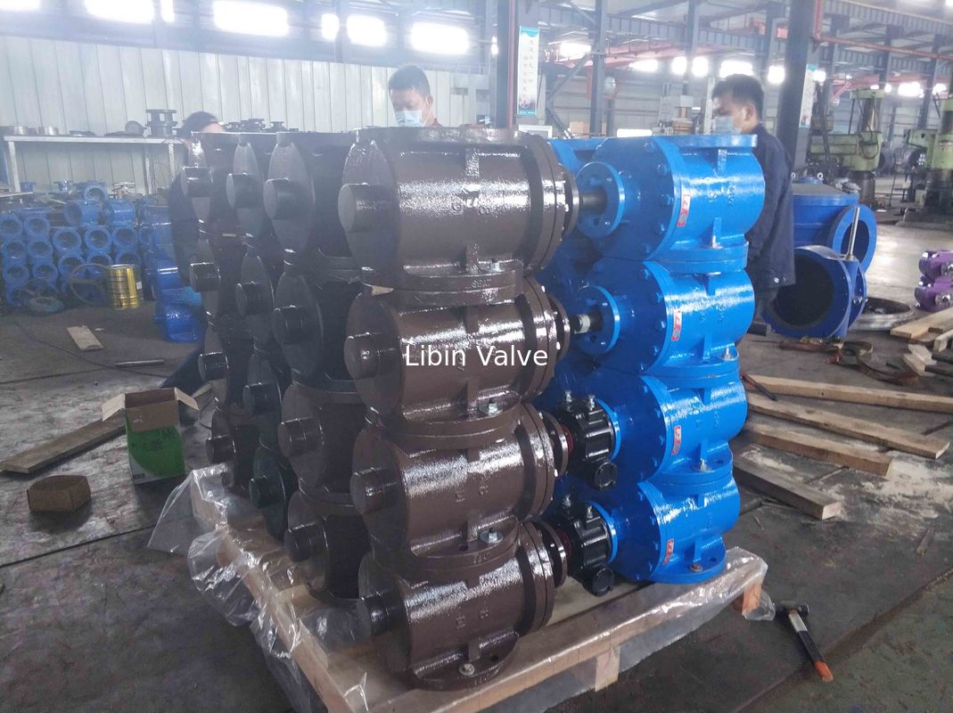 • China AWWA DN2000 SS304 Blue Pneumatic Plug Valve , Worm Gear Electric Plug Valve Mechanic Joint Connection factory photos